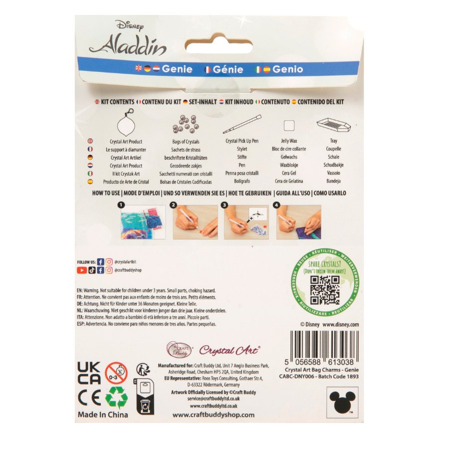 Each Crystal Art® Bag Charm kit comes with everything you need to complete the project. It's super fun and relaxing to make with a simple adhesive template to add your gems to, and clear instructions. Carry a piece of Disney's magic world with you wherever you go with this 'larger than life' character charm!
