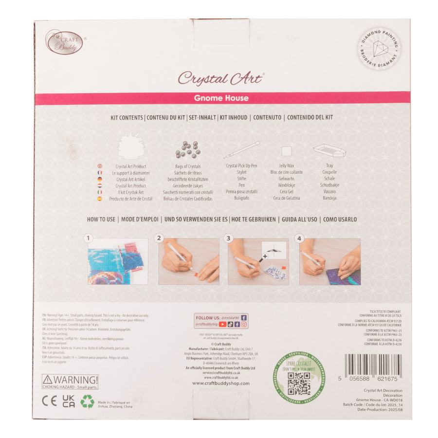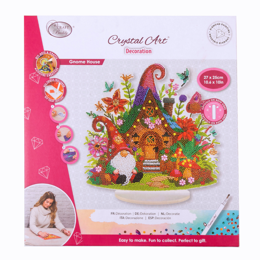 Create a magical decoration with the whimsical ‘Gnome House’ Crystal Art® Decoration Kit from Craft Buddy. This charming design features a cosy gonk-style home nestled among flowers and grass, with a cheerful red-hatted gnome relaxing on the doorstep. The freestanding acrylic piece sparkles on both sides, making it perfect for brightening any room. The pre-cut acrylic shape comes with a double-sided adhesive template - simply match the crystals and place them using the included tool. With everything you need inside, it’s a fun and easy crafting project that adds a touch of charm to any space