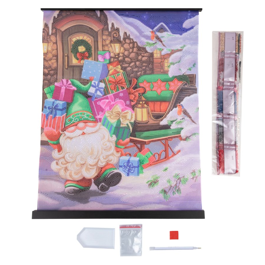 Gnome with Gifts Crystal Art Scroll Kit 40x50cm