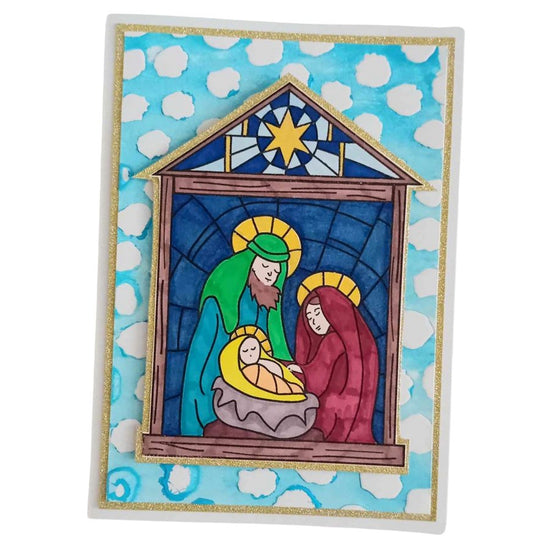 A well-loved method of crafting, mixed with a traditional Nativity Scene is a charming combination. This large stamp has been designed with a thick borderline, so you can recreate the glory of a colourful glass window. Take a deep black ink pad and stamp away over the festive season, whether you want to make a card, tree decoration or table place setting.