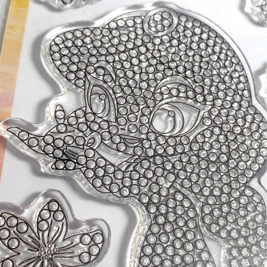 The stamped images contain small dots, perfectly sized to fit leftover Crystal Art® drills, self-adhesive gems, pearls or liquid drops and glitter glue. These enable you to create Crystal Art® images again and again! You can follow the colours of the character, with sparkling turquoise for her robe, or get creative and give her a new look - it’s up to you!