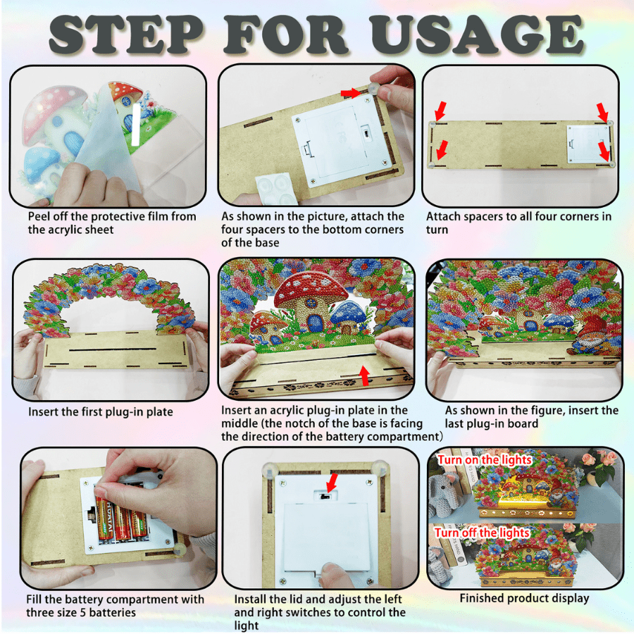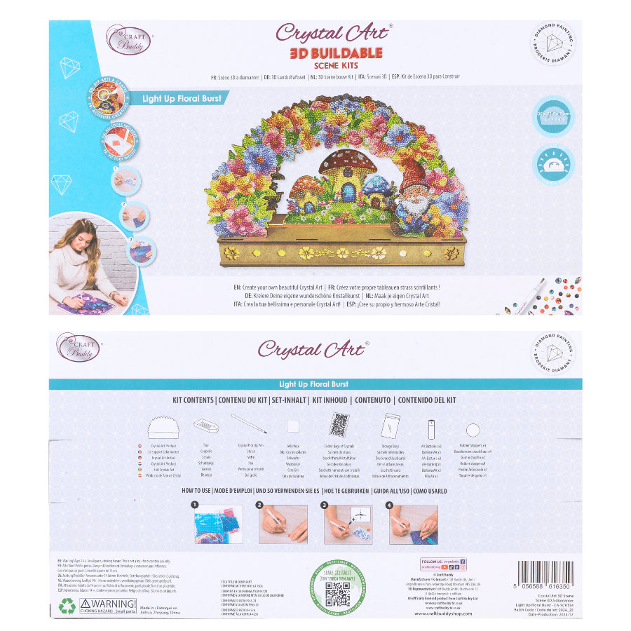 The Craft Buddy 'Light Up Floral Burst' Crystal Art® 3D LED Kit gives a burst of colour and cheer to anywhere you choose to display it! This bright kit comes with all you need to assemble this gonk and his toadstool home, among layers of floral arches.