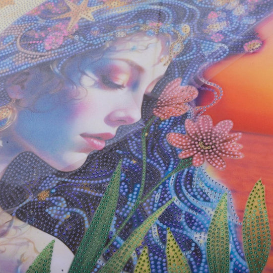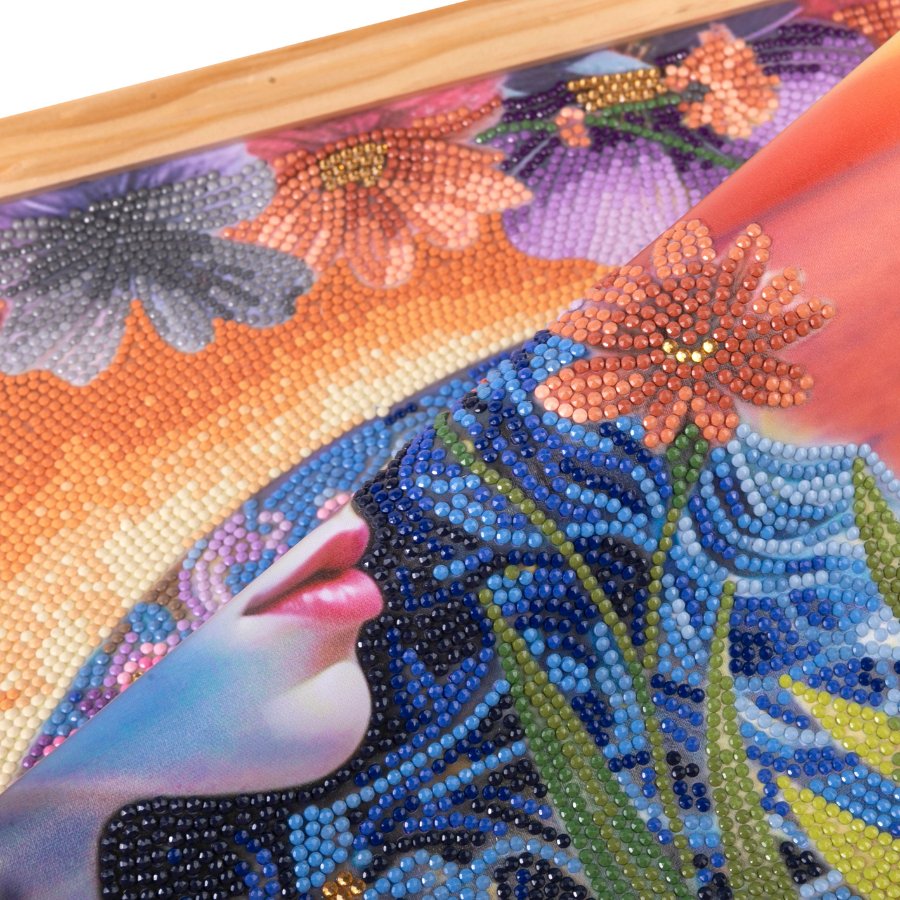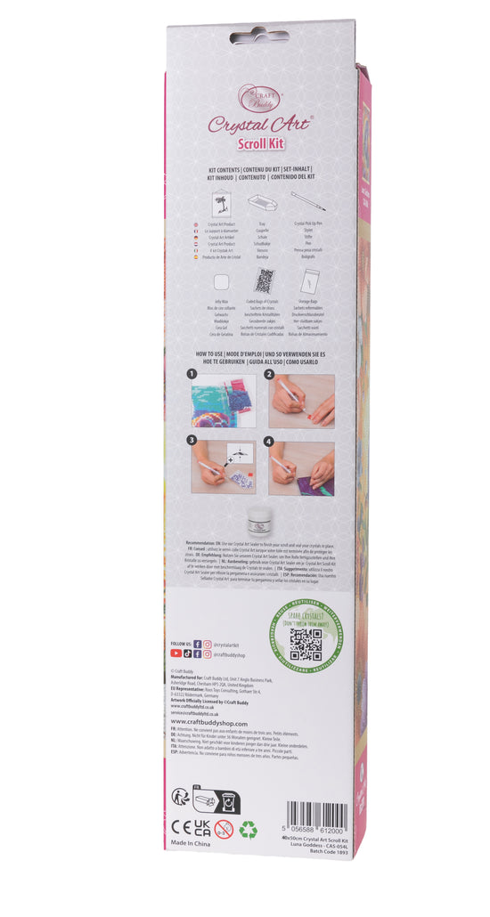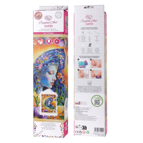 Create the feminine embodiment of the Moon with the stunning 'Luna Goddess' Crystal Art Scroll Kit. Here, a bewitching lady in tones of twilight blue and purple is decorated and surrounded by flowers and Autumnal nature. The vibrant colours of this design will give crafters of all ages and levels a wonderful crafting experience. There are so many colours of diamond gems within this kit, it will be fun choosing where to start and what area to complete next. Not just for this season, this scroll would twinkle, wherever you choose to display it.