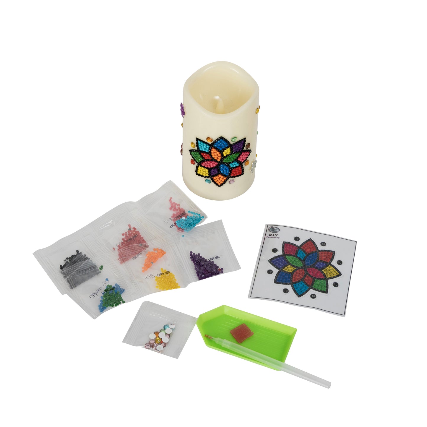 Each kit contains 1 Crystal Art motif and corresponding crystals, a pick up pen, wax and tray.