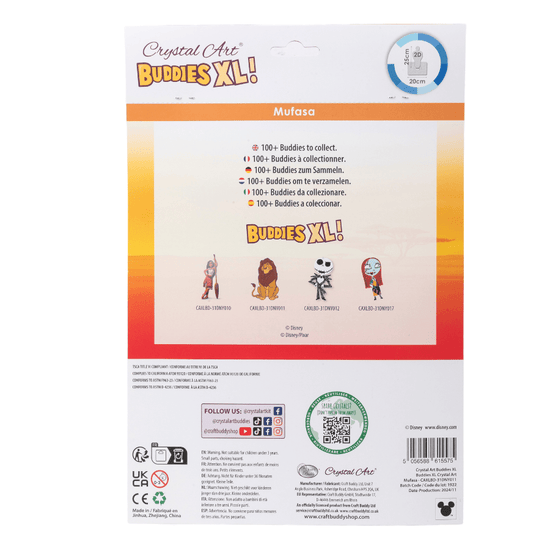 Father to Simba, and head of Pride Rock, the strong and wise Mufasa has been immortalised in sparkling Crystal. The 'Mufasa' Crystal Art Buddies XL Craft Kit is another amazing character from the magical world of Walt Disney, and now in the Craft Buddies XL Series.
