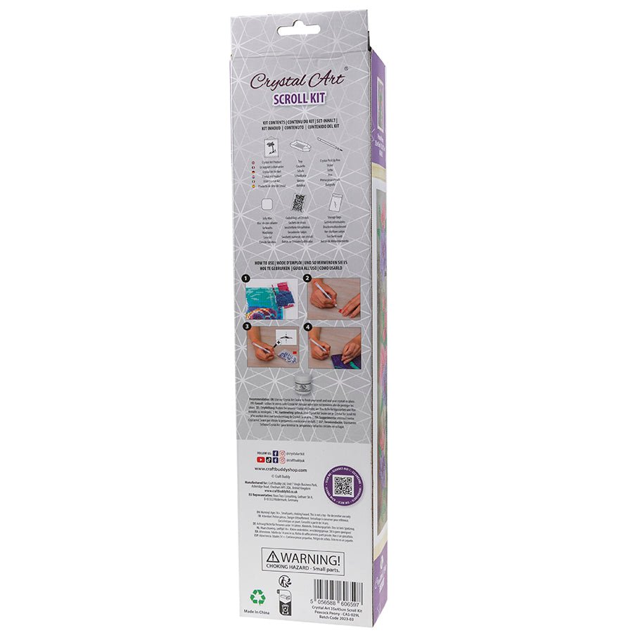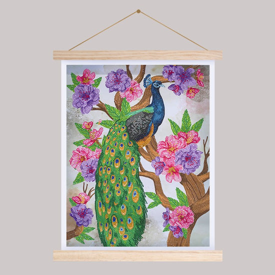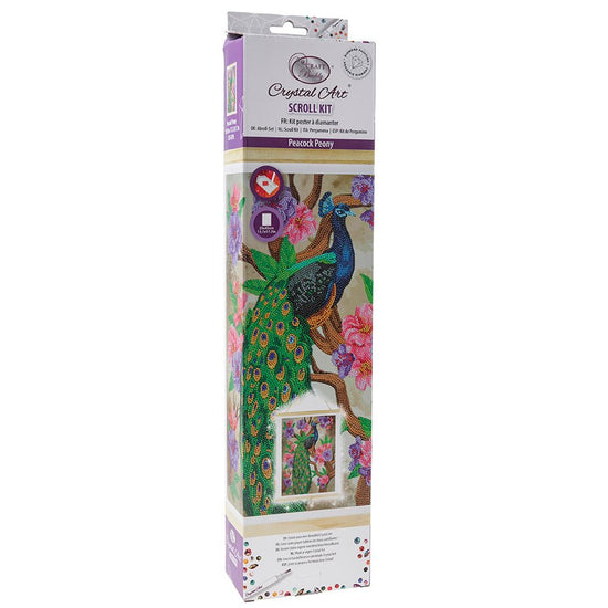 This fabulous Peacock Peony Crystal Art Scroll kit allows you to create a stunning piece of wall art to display in your home, using the Crystal Art technique. The scroll comes pre-attached to attractive wooden hanger bars - simply hang onto a nail or hook in the wall, when you've completed your project - it couldn't be easier to show off your creation.