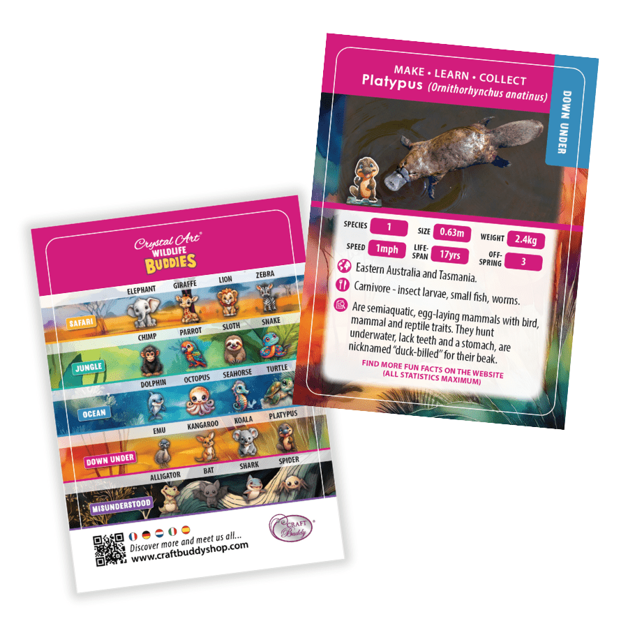 New for 2025, Craft Buddy brings you the collectable Crystal Art® Wildlife Buddies series. Featuring 20 original animal designs, each Crystal Creature has been given the diamond painting treatment, with fur, fins, tentacles and tails that will sparkle and shine. The new 'Series 5' range is made to be collected, whether you choose your favourite species or habitat. Why not go on a trek across wild deserts or swim the deep blue sea and collect the entire range!