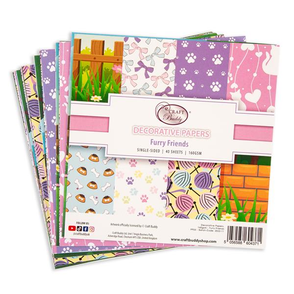 Our Craft Buddy Furry Friends Decorative Papers have been specially selected by Craft Buddy to enable you to make stunning coordinated projects with the Crystal Art Furry Friends stamp sets (sold separately) or any of your other crafty stash items. The decorative paper pack contains 40 sheets of single sided papers with 8 gorgeous designs giving you plenty to create with and use in other paper crafting projects.