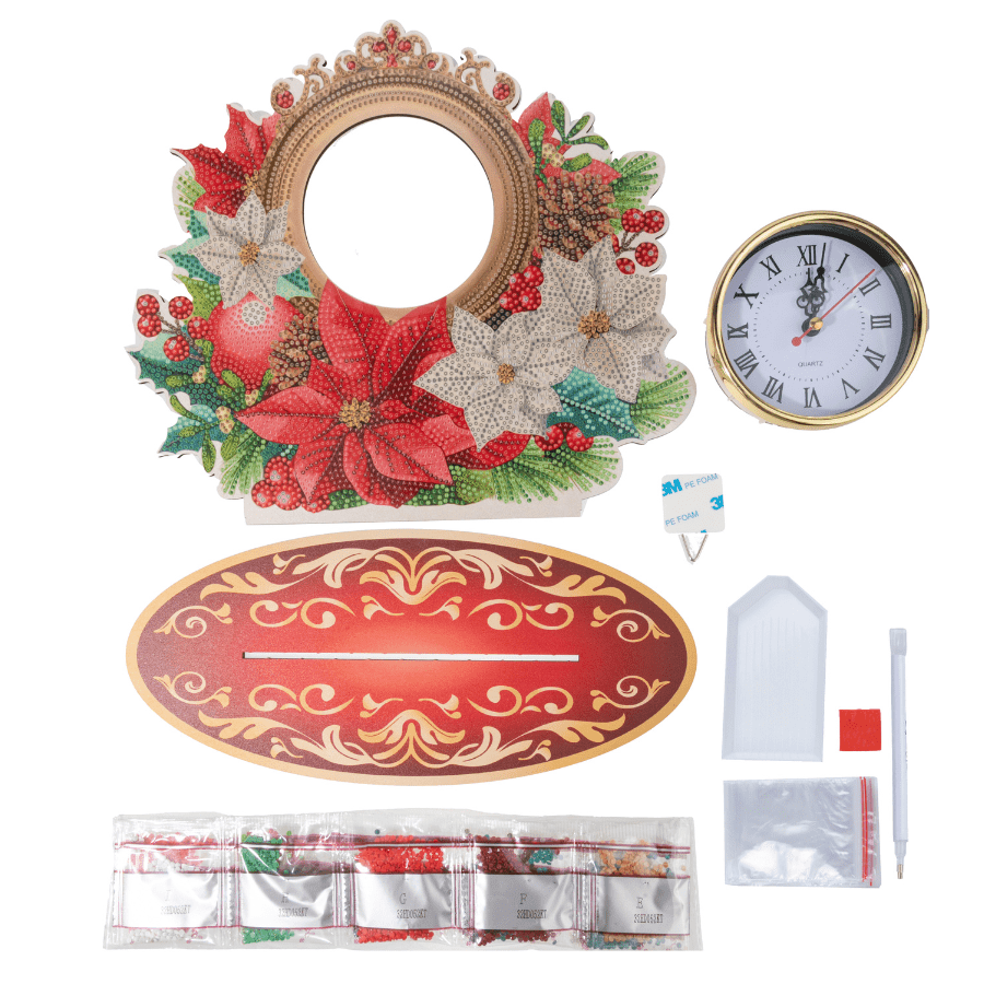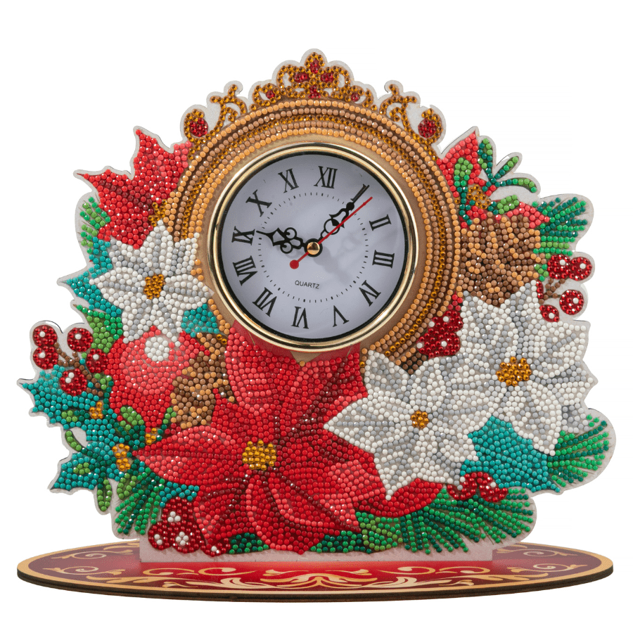 Create a timeless Christmas keepsake with the Craft Buddy 'Shining Poinsettia' Crystal Art® Clock Kit. This beautifully crafted kit lets you make a fully working 3D clock, featuring a traditional Roman numeral dial and an elegant gold metal surround. The clock slots perfectly into a festive template adorned with a classic poinsettia design in rich red and white tones. Once complete, the result is a nostalgic and eye-catching decoration that’s perfect for a mantelpiece, table display, or as a heartfelt handmade gift for a loved one this holiday season.