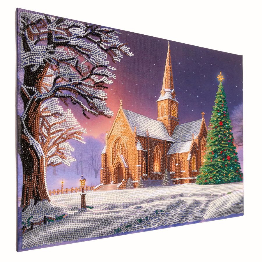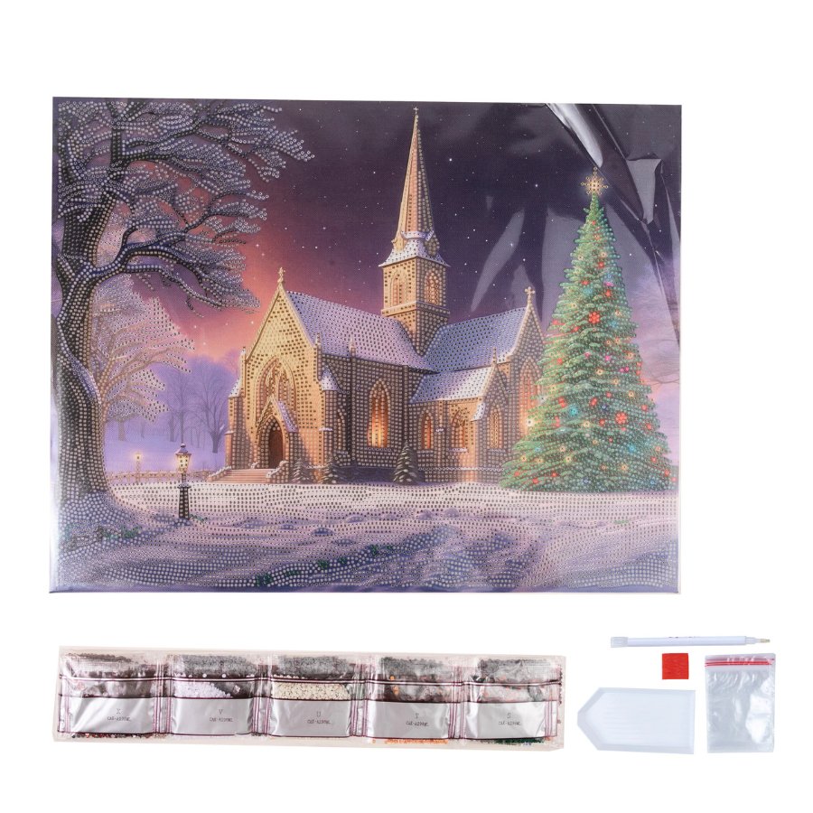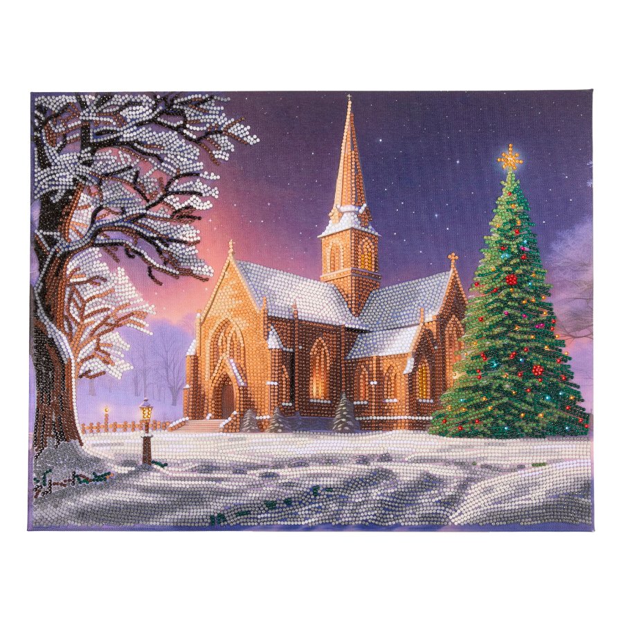 Looking at this charming canvas, you can hear the Christmas carols being sung, and feel the warm glow through the building. The Craft Buddy 'Silent Night' Crystal Art® Canvas Kit will get you in the festive mood, and may even remind you of your own town or village. A striking church stands in its snow-covered grounds, with a majestic tree towering over the entrance to the services.