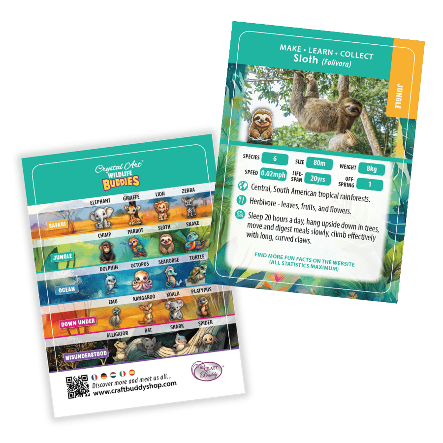 New for 2025, Craft Buddy brings you the collectable Crystal Art® Wildlife Buddies series. Featuring 20 original animal designs, each Crystal Creature has been given the diamond painting treatment, with fur, fins, tentacles and tails that will sparkle and shine. The new 'Series 5' range is made to be collected, whether you choose your favourite species or habitat. Why not go on a trek across wild deserts or swim the deep blue sea and collect the entire range!