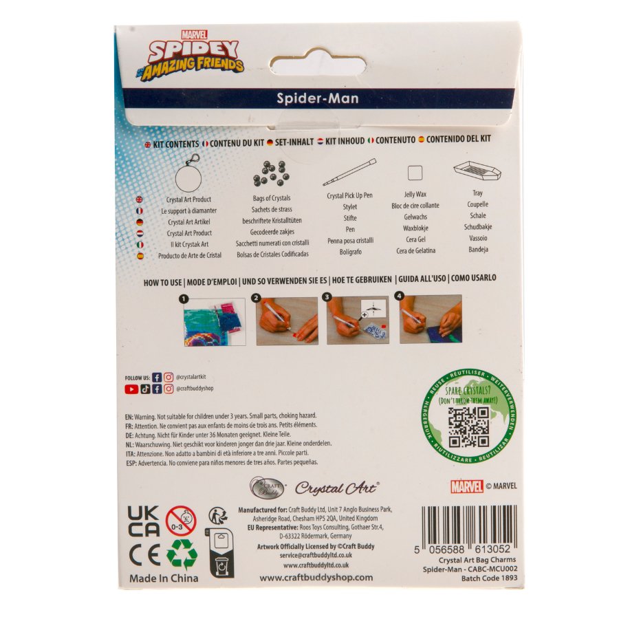 Getting your school bag or satchel to stand out with individual style is a tangled web indeed! Let our favourite MARVEL Superhero (and Craft Buddy) come to your rescue, with the super-cool 'Spiderman' MARVEL Crystal Art® Bag Charm. Take 'Spidey' on all your adventures by clipping this sparkling charm featuring the iconic red face mask, and you'll never lose your bag amongst others again. With an easy-to-clip keyring fastening, it will brighten your day on any satchel, rucksack, holdall or even your keys.