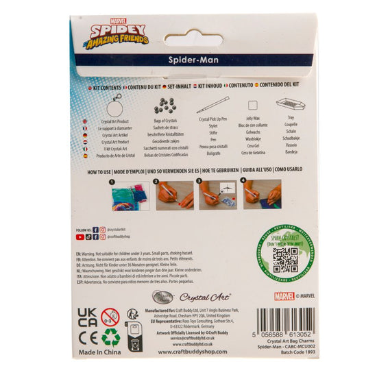 Each Crystal Art® Bag Charm kit comes with everything you need to complete the project. It's super fun and relaxing to make with a simple adhesive template to add your gems to, and clear instructions. Carry a piece of the MARVEL Universe with you wherever you go and stand out as a true Crystal Art® 'Hero'!