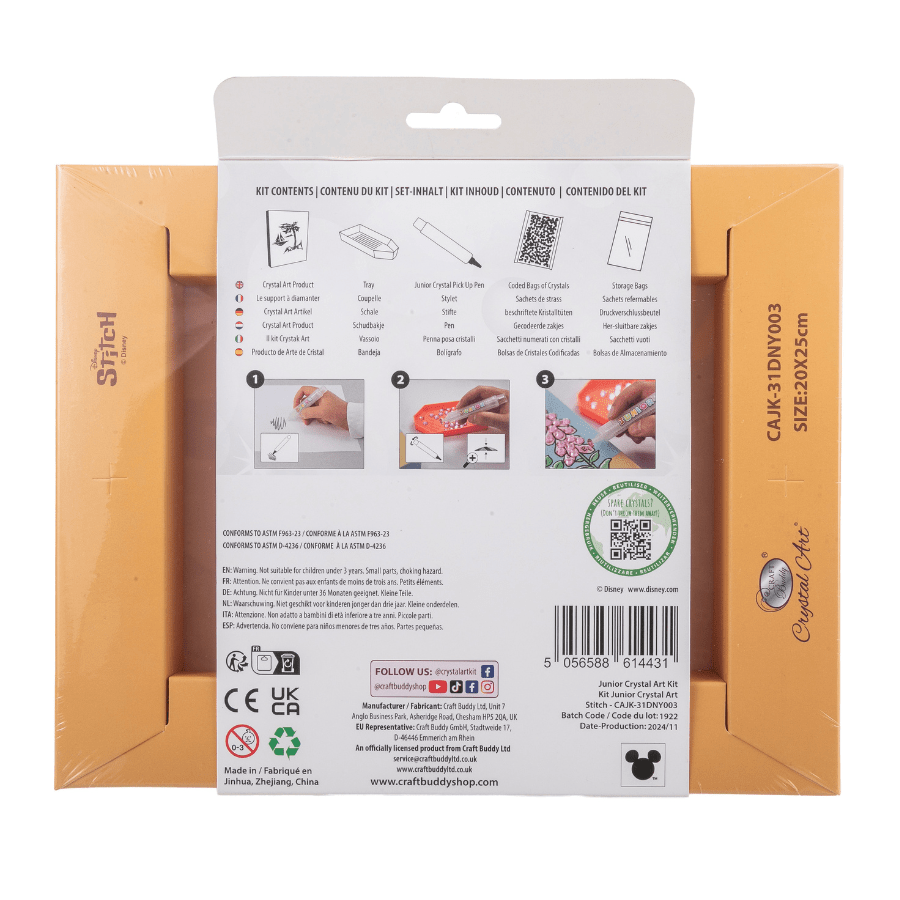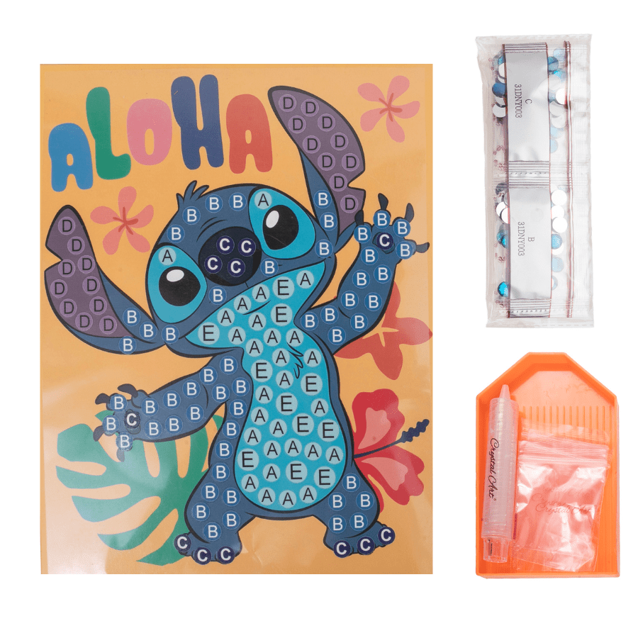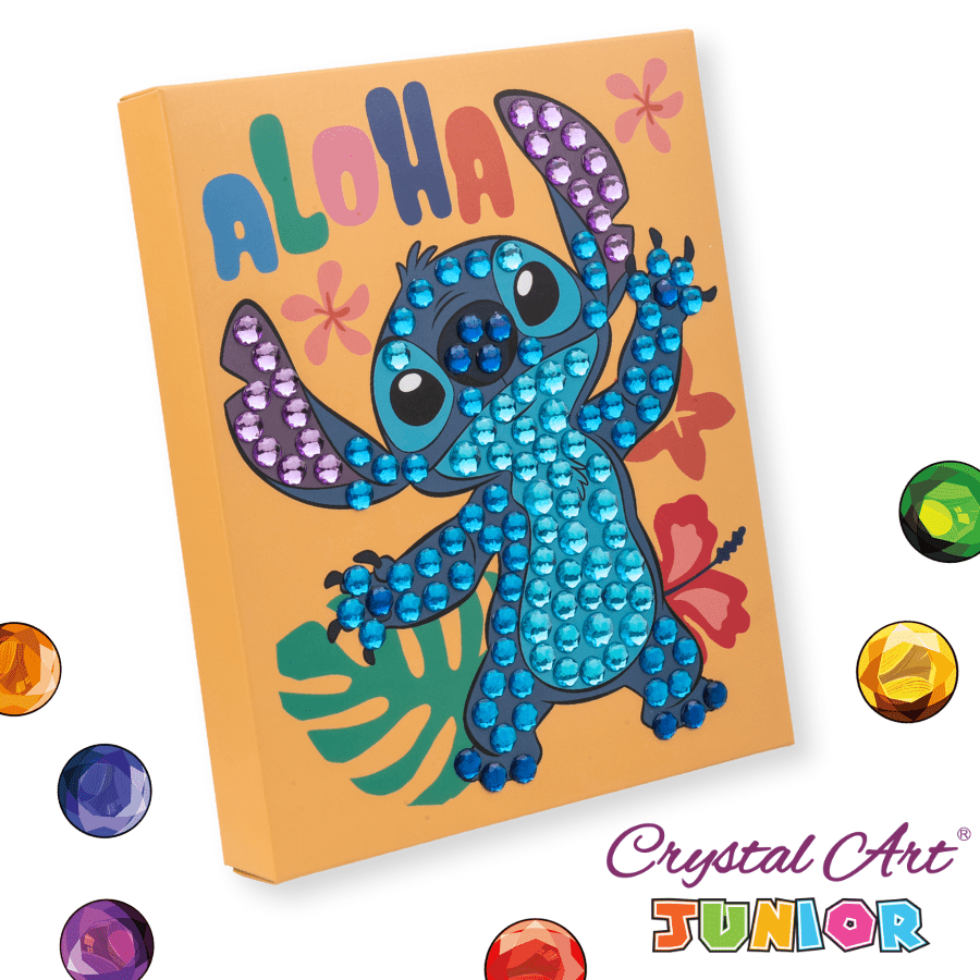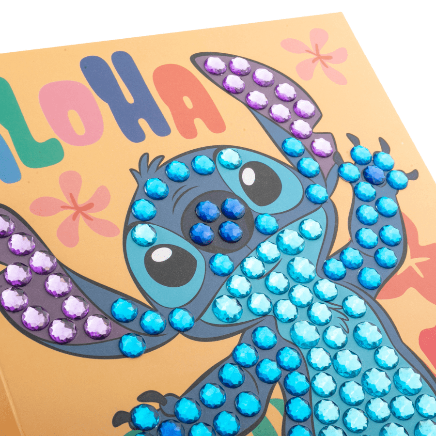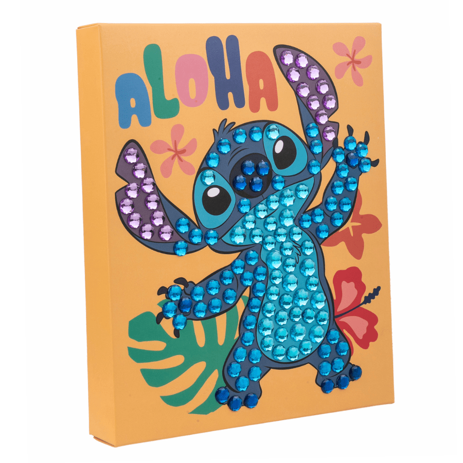 Say "Aloha" to our favourite Disney Alien - 'Stitch'! Introduce younger children to the magic of Crystal Art® through this accessible and colourful design. Encouraging creativity and co-ordination, this easy to use craft kit comes with all tools your little one needs to complete a bright piece of art to hang in their room! Simply place each 'larger size' shimmering gem onto the adhesive template, and make sure Stitch truly 'sparkles'!