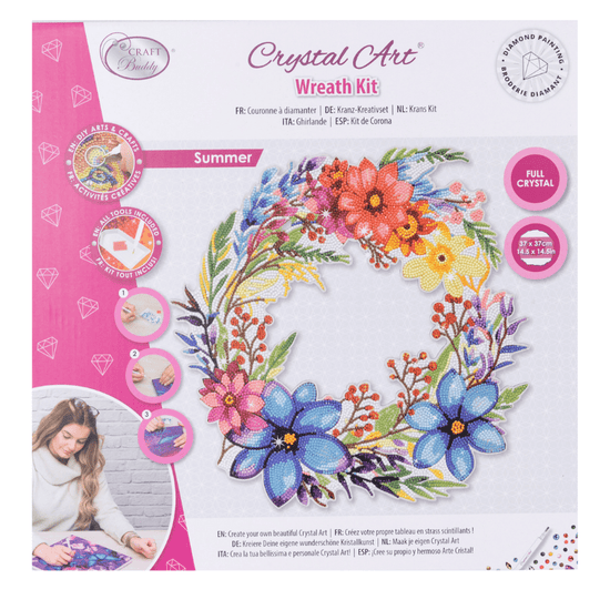 Any visitors to your home this Summer will not fail to be delighted with this sparkling door wreath. The pretty Craft Buddy 'Summer' Crystal Art® Wreath Kit will make any door sparkle when guests visit. It is full of bright flowers, petals and berries in every vivid colour you could imagine, to give a seasonal 'wow' factor!