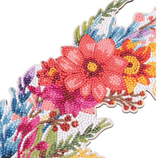 The ornate-edged MDF template is adhesive, so all you need to do is peel back the film and start adding crystals in the corresponding coded spaces. It is a 'full' Crystal kit, which means all of the wreath is adorned with top-quality diamond painting, for maximum sparkle. With all the gems you need to complete the kit, as well as tools and instructions, this is the perfect project to make for your door this Summer!