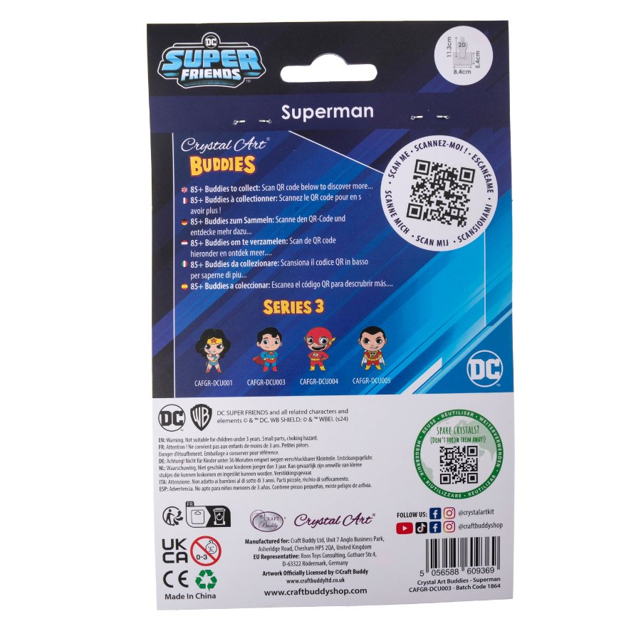 Introducing Superman, one of many highly sought after Crystal Art Buddies from our brand new Series 3 collection! Brighten up your living space, or surprise a friend with a unique gift that captures the timeless appeal of Superman in a dazzling crystal display. Get ready to immerse yourself in creativity and nostalgia with the Superman Crystal Art Buddies from Series 3 – where imagination and crystals meet to create something truly magical.