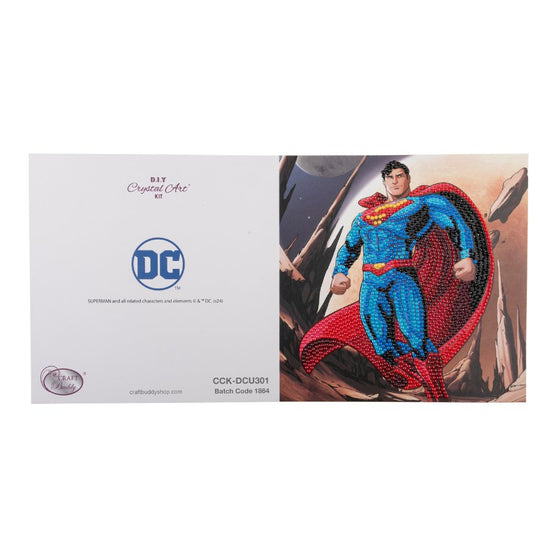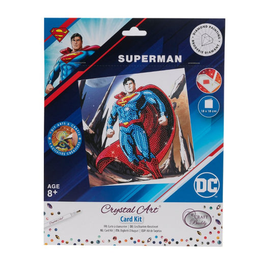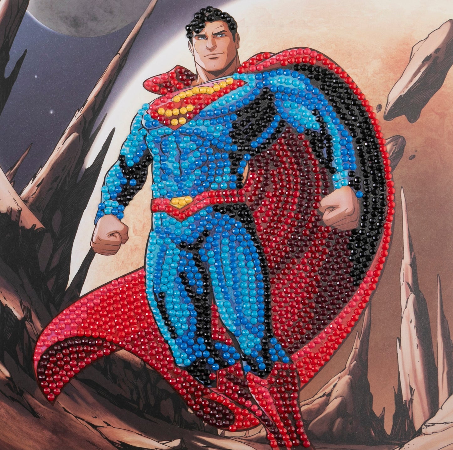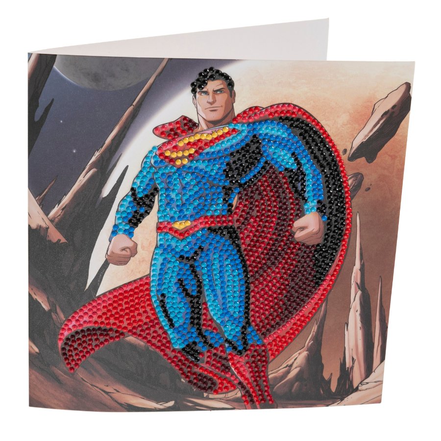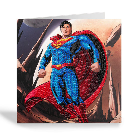 Introducing the 'Superman' Crystal Art® Card Kit that captures the iconic Superman in all his glory, poised for action against a dynamic backdrop. Officially licensed by DC, this Superman DC Crystal Art® Card Kit is a perfect craft for comic fans and aspiring heroes alike, and a shining gift to send a message of hope and strength.