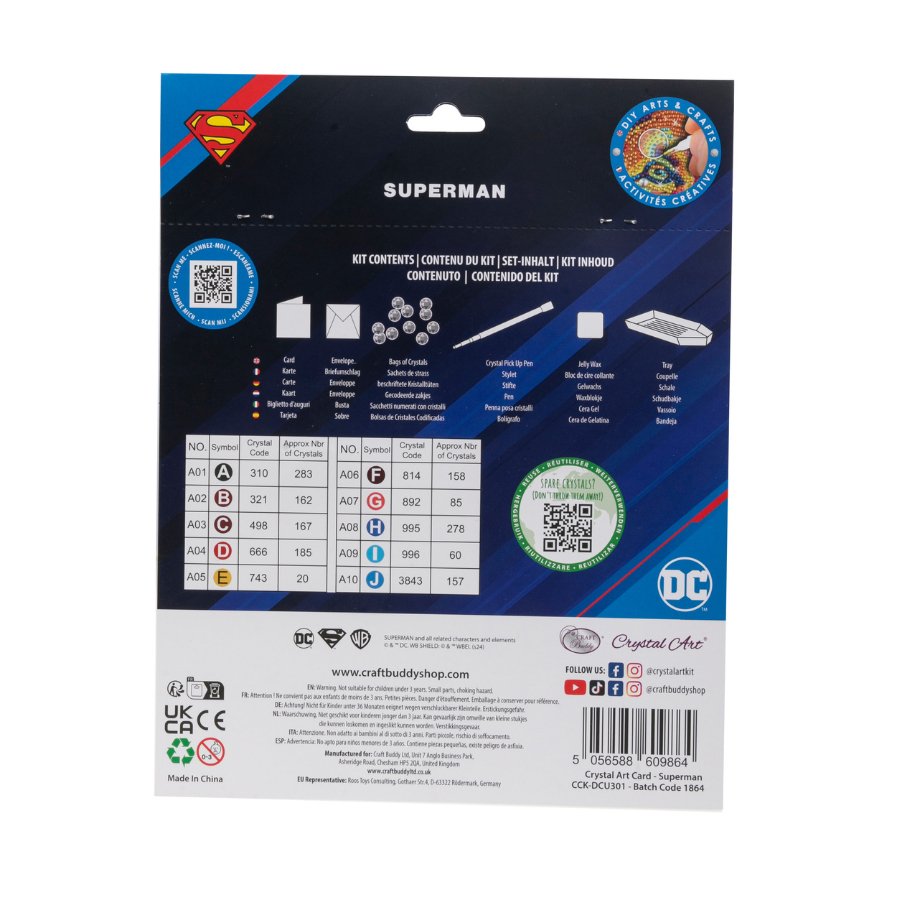 Each 'Superman' DC Crystal Art® Card Kit comes with everything you need to create a dazzling, display-worthy card that stands out from the rest. It's more than just a greeting, it's a keepsake that sparkles joy on full display.