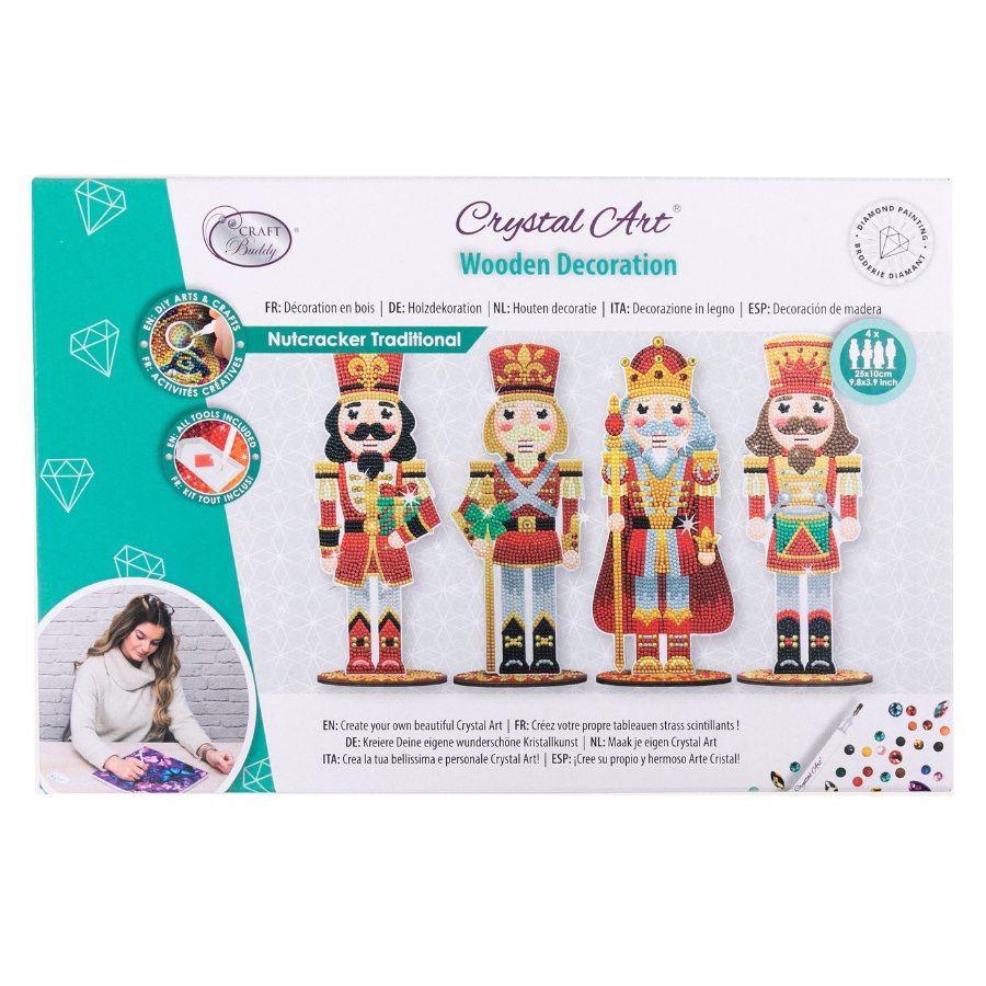 Create your own beautiful Diamond Art Nutcrackers with this set of 4 MDF figurines. These pre-printed nutcrackers come with a numbered template, so all you have to do is pick up the included tool and start placing the coloured resin gems on the corresponding numbered dots.